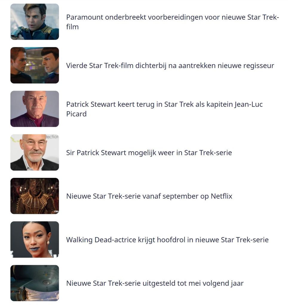 Vi vroeg me vandaag of ik had gelezen over de nieuwe Star Trek film op nu.nl. Ik had er over gelezen alleen niet erg recent. Er zou een nieuwe naam zijn aangetrokken voor de regie of het scenario. Ze stuurde me de link naar het artikel ‘Vierde Star Trek-film dichterbij na aantrekken nieuwe regisseur‘. Ook viel haar oog op het feit dat Thor bijkluste where no one had gone before. Ze is niet bepaald een fan kan ik wel stellen. Dit bericht is van 2019! Dat kon het niet zijn. Ik google ‘nu.nl star trek’ en het eerste resultaat was naar de pagina van de ‘tag’ ‘star trek’. Het meest recente bericht hierop was uit 2020.