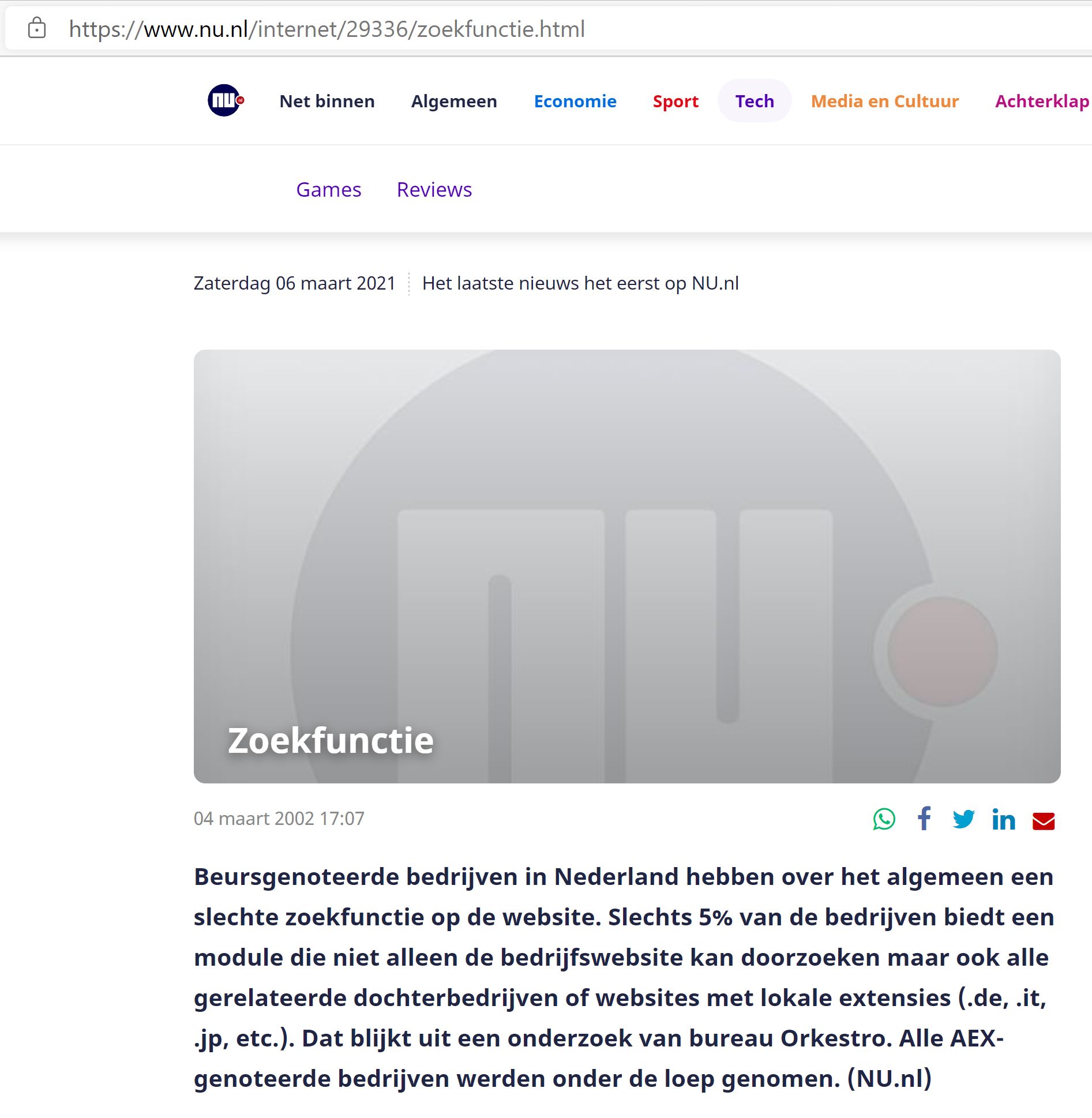 Ik gebruik zelf tags en ik weet wat een gedoe ze zijn. Voor een site als nu.nl moet dat vele malen lastiger zijn. Alleen als je zoekfunctie dan ook nog zo slecht te vinden is, ontbreekt of gewoonweg niet goed werkt. Dan gaan er toch wel erg veel dingen mis. Zeker voor zo’n grote site als nu.nl.